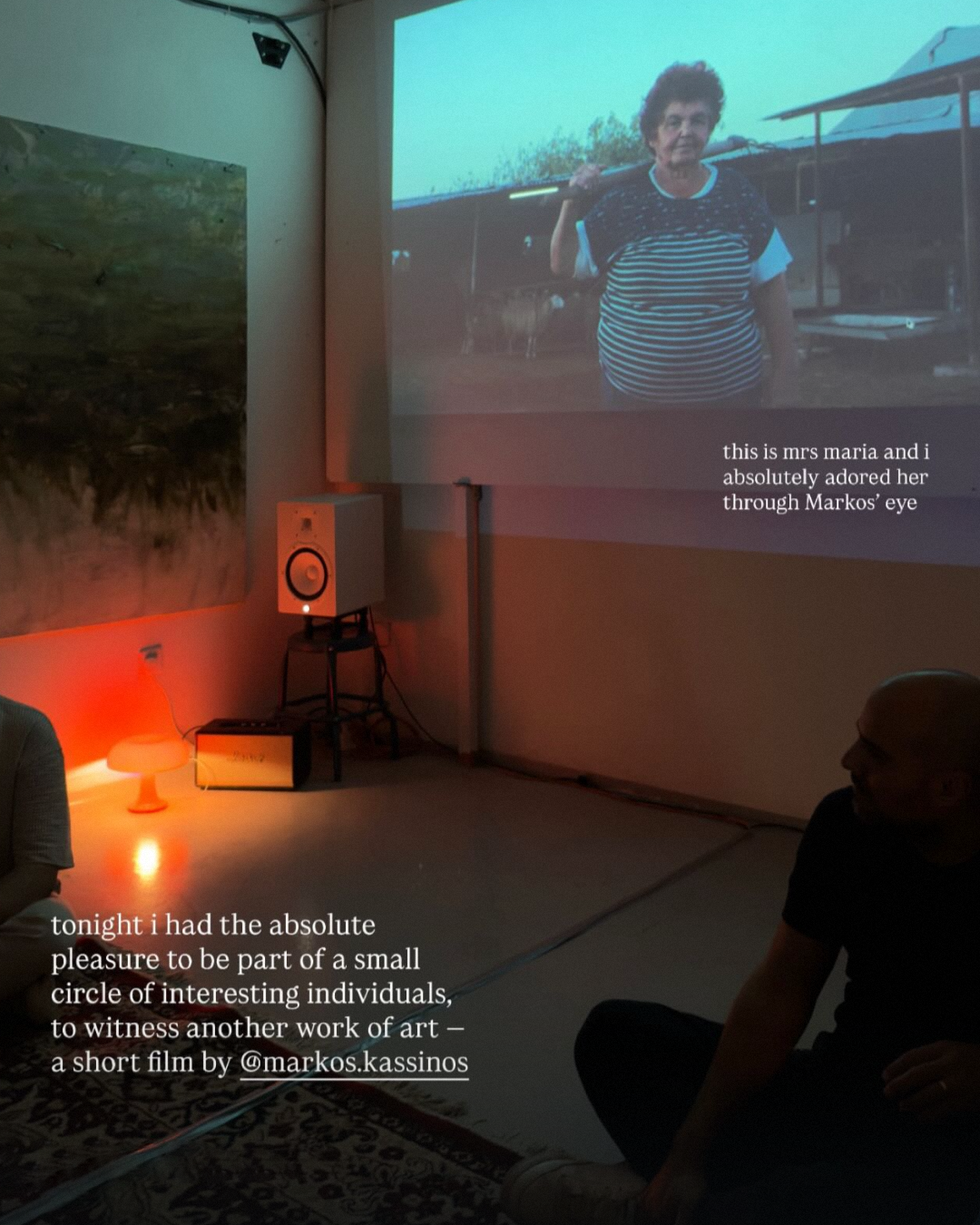 In November 2025 I invited a small group of people into a room to watch a six minute film about a shepherd named Maria. I talked about how I found her, what drew me to her story, and what the process of making the film. Then we talked all of us together.